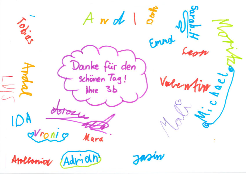 Haben Sie herzlichen Dank für Ihr Engagement und die schönen Fotos! Alles war perfekt, (…) gerne wieder im nächsten Schuljahr!